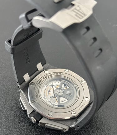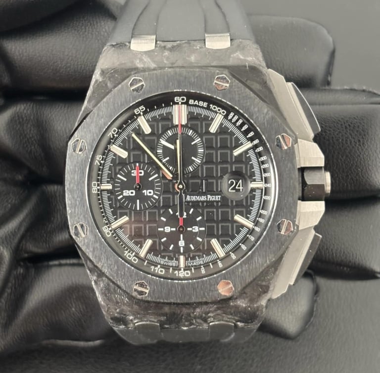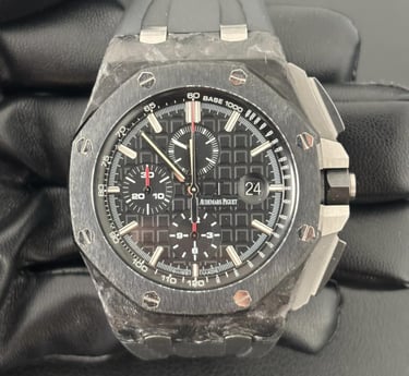 The Audemars Piguet Royal Oak Offshore 26400AU in forged carbon is a rare and highly distinctive variation of the 26400 series. Released in 2015, this model showcases Audemars Piguet’s bold design and innovative use of materials, making it a prized addition for collectors seeking exclusivity and investment appeal.