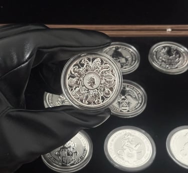 The Queen’s Beasts 2oz Silver Set, complete with the highly sought-after Completer Coin, is one of the most prestigious modern bullion collections. Struck in .999 fine silver by The Royal Mint, this full set celebrates British heritage while offering exceptional investment appeal and collectability for serious investors and collectors alike.