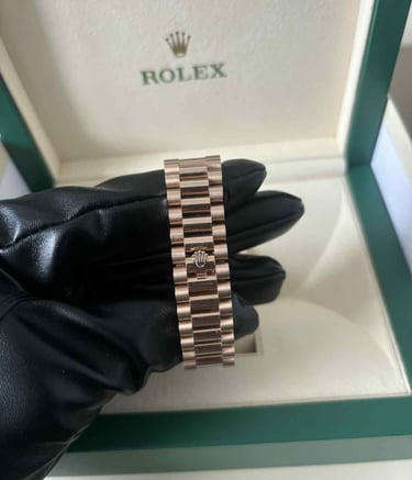 The harmonious contrast of the warm Everose tones with the textured dial design showcases Rolex’s attention to detail and timeless elegance — a true statement of refinement and investment potential.